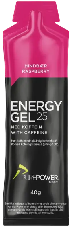 PurePower Koffein-gel med Hindbær-smag giver dig det bedste fra to verdener: Et energitilskud af hurtige kulhydrater og den velkendte opkvikkende effekt af koffein. Så kan du både få flere kræfter, når energien begynder at slippe op og udnytte, at koffeinen gør det muligt at presse dig selv lidt mere.